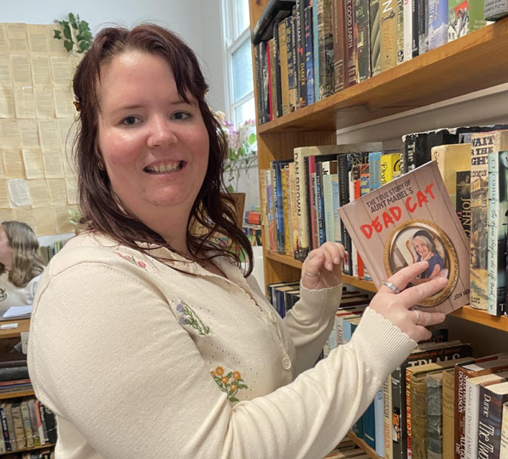 It has been twelve months now since the True Story of Aunt Mabel’s Dead Cat book went on sale and the response from people who have purchased the book has been amazing. The remembrance of the story brings with it a chuckle as people visualise once again the predicament of Aunt Mable and her “precious possession,” and nothing was working out according to plan, that is, until the very end. The Dimond Book Garden – where new and used books can be found in abundance in Kingaroy, has a supply of “The True Story of Aunt Mabel’s Dead Cat” book just below their front counter. (Don’t be fooled. The included image isn’t where the book is actually located – it was a publicity photo only.) Sarah with a copy of “The True Story of Aunt Mabel’s Dead Cat” The book has had such good response that it has been entered into an international competition for authors with cats as being the central theme of their story – I’ll now have to be patient and “wait and see” what the judges think!